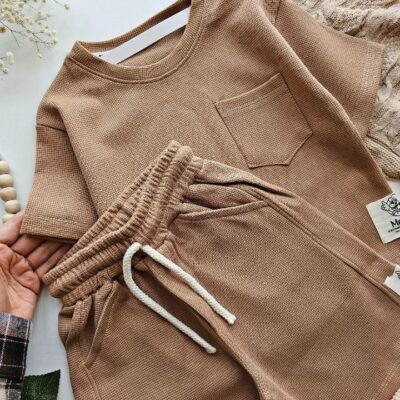 🟡جنس تیشرت شلوارک بیسکوییتی بسیار لطیف بی نهایت با کیفیت شلوارک کمر کش با بند قابل تنظیم دوخت تمیز ضد
