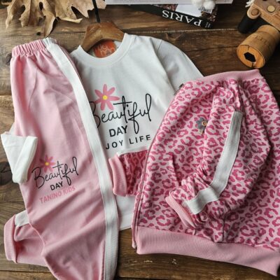 سایز:۴۰/۴۵/۵۰/۵۵/۶۰/۶۵ مناسب سن : ۲تا ۱۴سال پارچه کار: دورس اسپان سه تیکه کار شامل بلوز آستین بلند سویشرت و