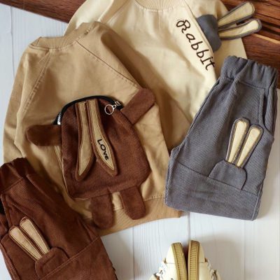 🟡بلوز شلوار خرگوشی جنس بلوز دورس دو نخ پنبه شلوارمخمل کبریتی پشت لباس یه کیف خیلی کیوت طراحی شده شلوار