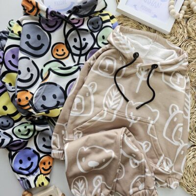 سایز۴۰/۴۵/۵۰/۵۵ مناسب سن ۱ونیم سال تا ۸سال سایز۴۰👈قدکراپ۳۵پهنا۳۴قدآستین۳۴شلوار۵۶سانت سایز۴۵👈قدکراپ۴۰پهنا۳۹قدآستین۳۶شلوار۶۴سانت سایز۵۰👈قدکراپ۴۵پهنا۴۰قدآستین۴۰شلوار۷۲سانت سایز۵۵👈قدکراپ۵۰پهنا۴۸قدآستین۴۲شلوار۸۰سانت
