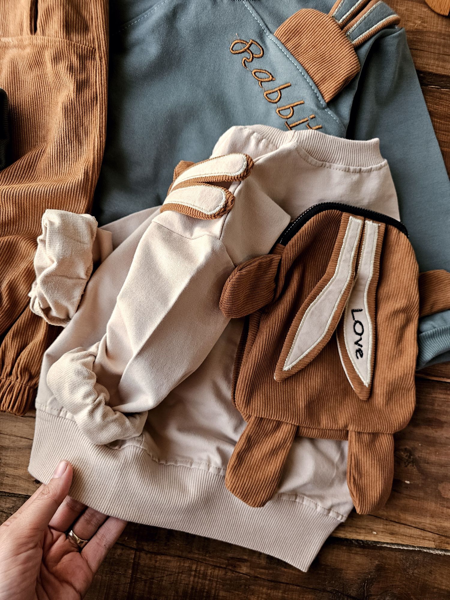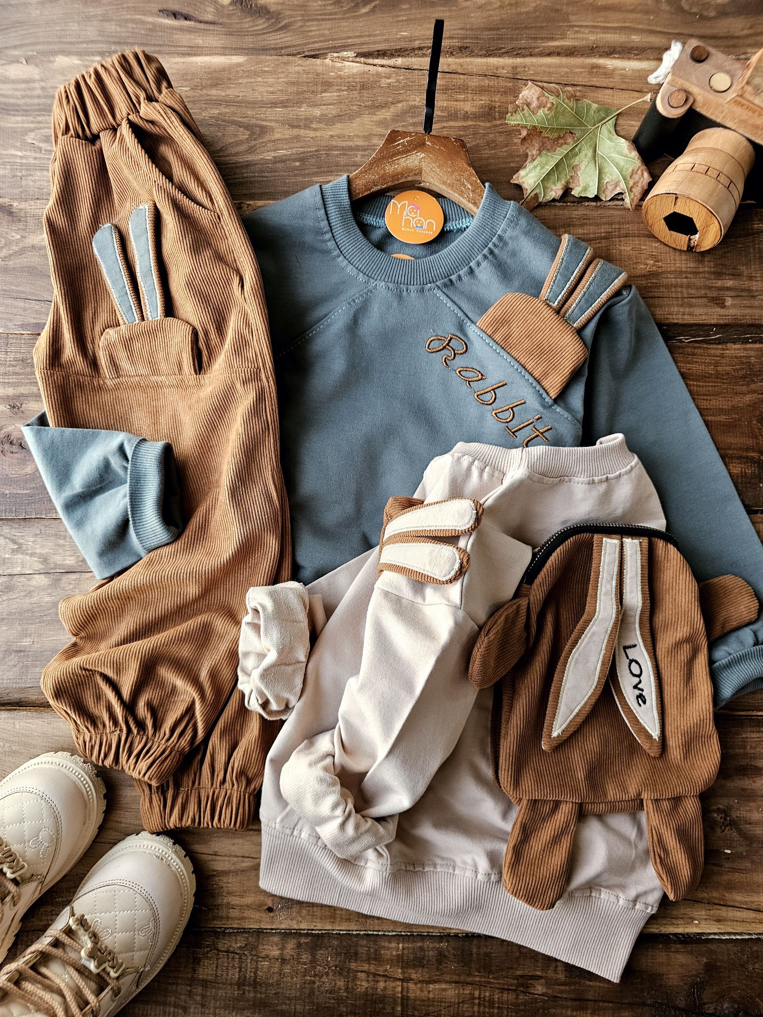 بلوز دورس دونخ پنبه هستش کار کیفیتش فوقالعاده عالیه پشت بلوز یه کیف کار شده که قابل استفاده هستش خلاصه که نگم براتون شلوار مخمل کمر کش و دمپا کش جیب دار با اون جیب های فانتزی خرگوشش دل همه رو برده خلاصه از دستش ندید👌