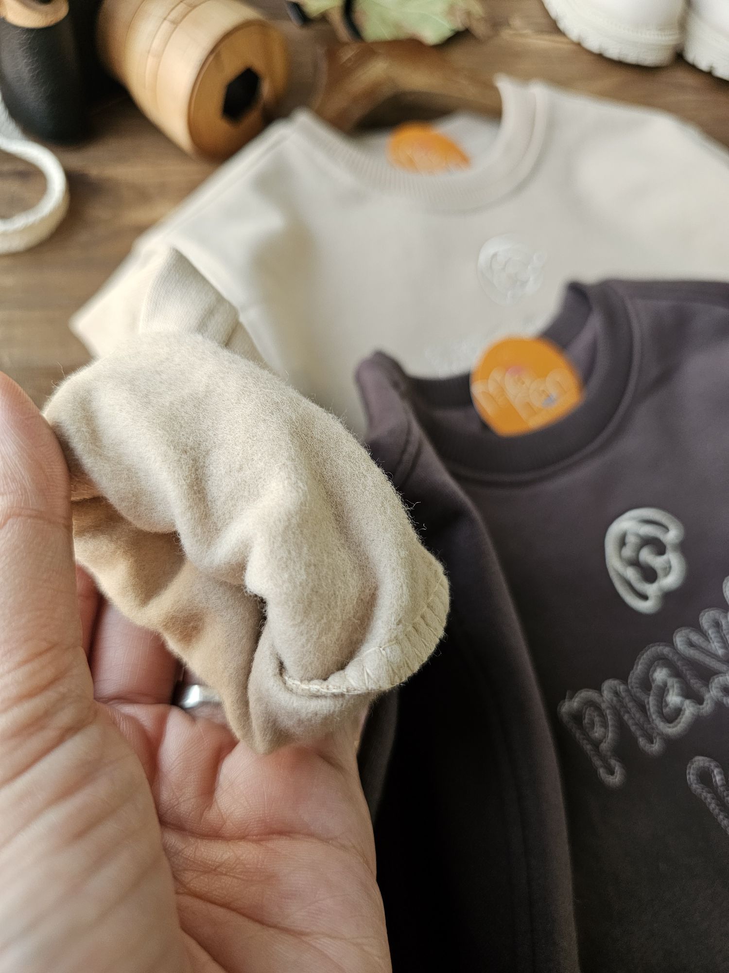 رنگبندی👈قرمز/گلبه ای /یاسی/نارنجی 🟡سویشرت دوریه یک رو( کتان) یک روی پارچه( تدی) کار شده فوقالعاده عالی دوخت
