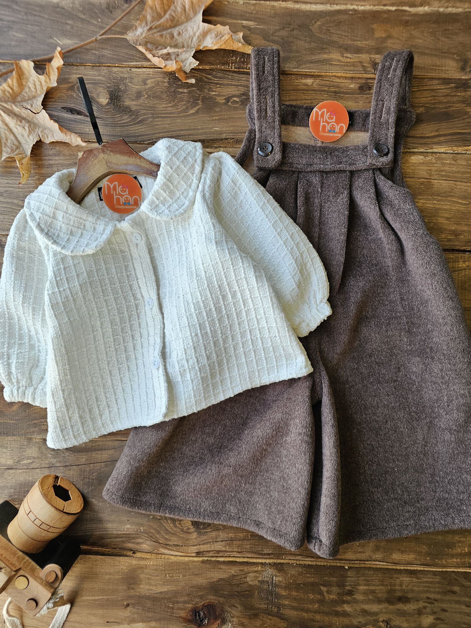واقعا نمیدونم چی بگم انقدر که خوشگله و خاص و باکیفیته شومیز یقه ببه با جنس مراکشی پشمی بسیار گرم داره دوخت فوقالعاده تمیز اورال فول بگ از جنس فوتر که تا لمسش نکنی متوجه نمیشی چی میگم انقدر نرم و گرمه مثل پنبه میمونه دوخت تمیز کار شرکتی هستش اورال جیب داره اگه میخوای تو پاییز و زمستون یه استایل متفاوت برای دخترت بزنی این ست و از دست نده چون تنخور بینظیری داره با یه کلاس خاص👌