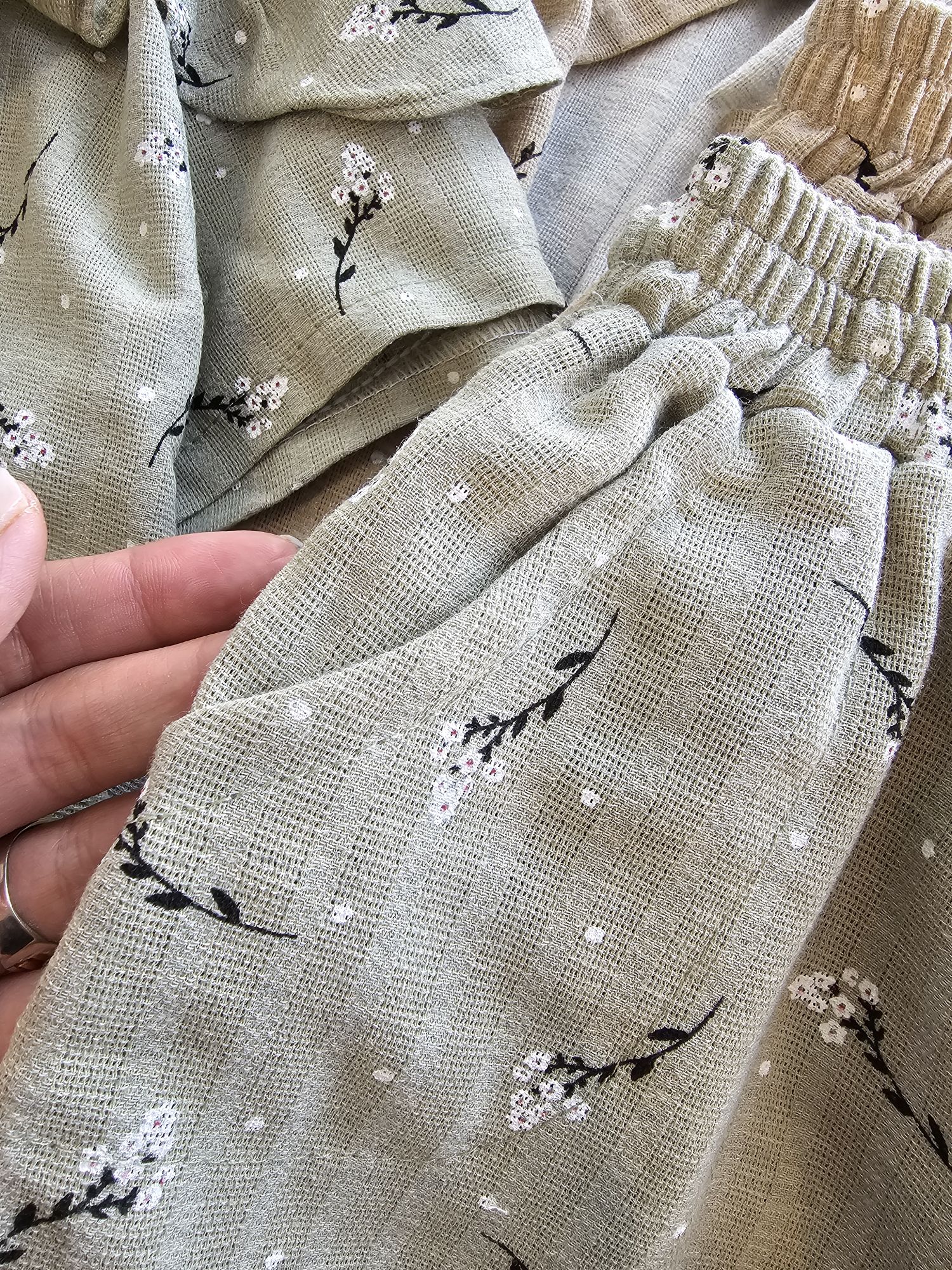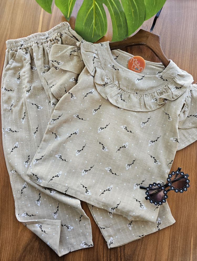 این ست دخترونه جنس پارچه نخی فوقالعاده باکیفیتی داره بلوز آستین چین کارشده و همچنین دور یقه یه کار فوقالعاده شیک دخترونه شلوار هم کمر کش و راحت و جیب دار پارچه کشسانی ندارد چون نخی هنگام انتخاب سایز دقت فرمایید ✅️