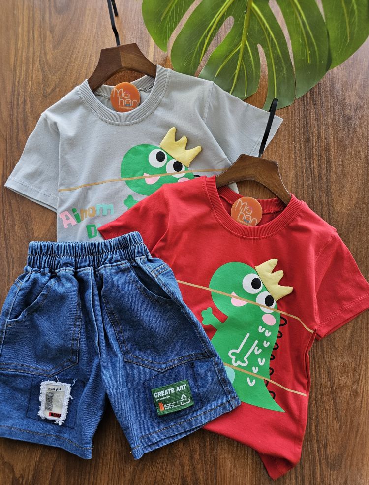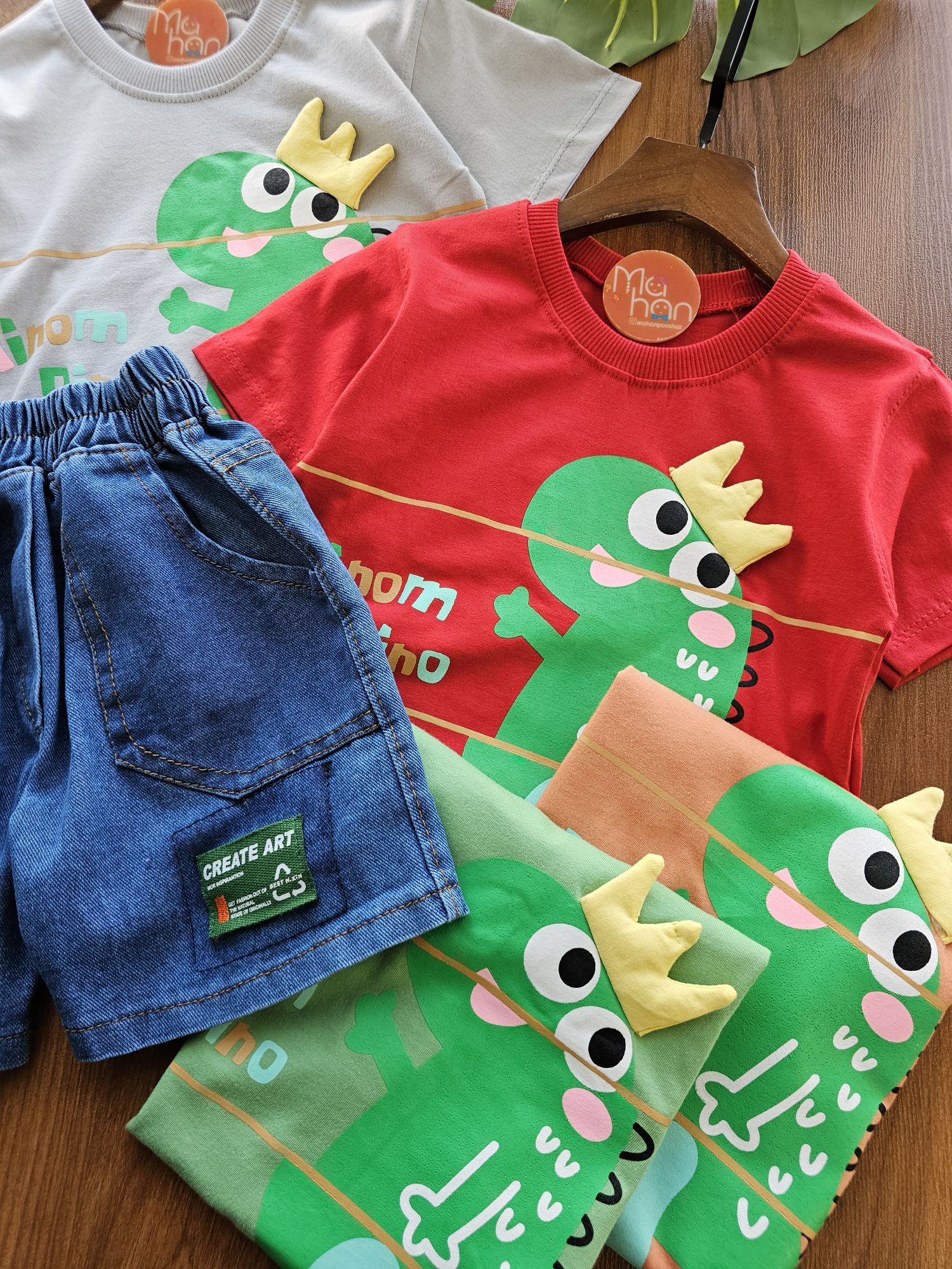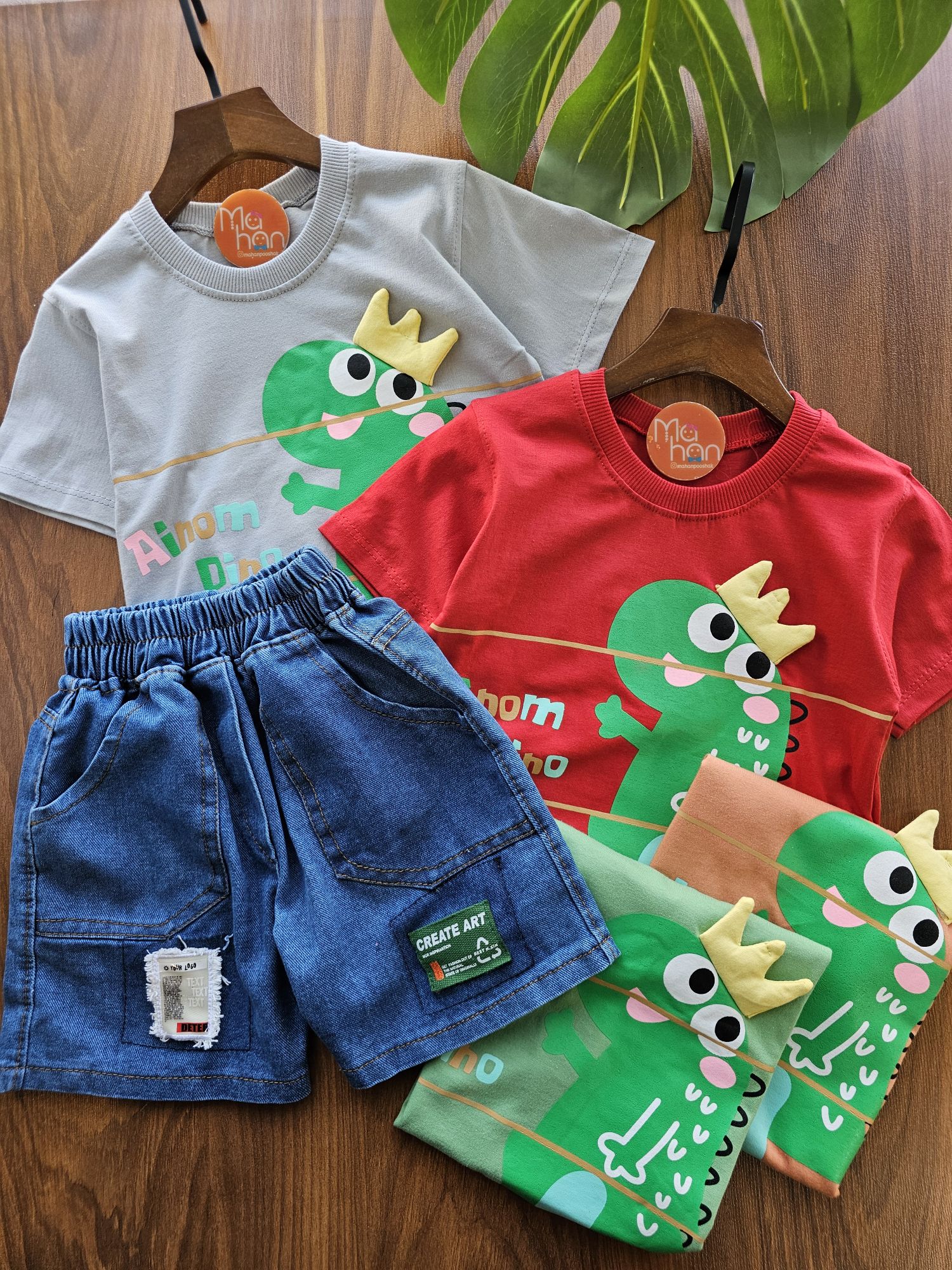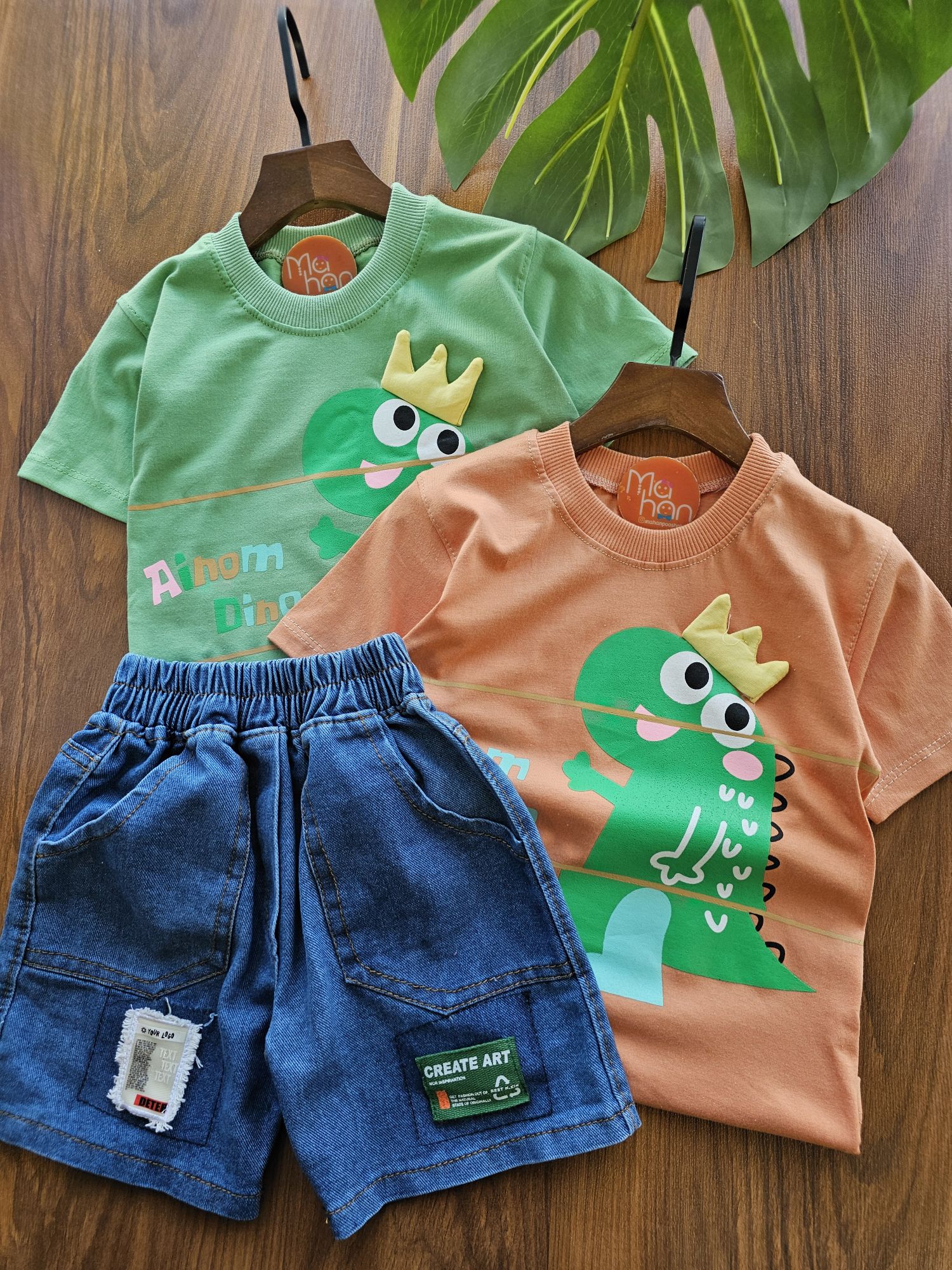 ست دینو الیاف پارچه بلوز پنبه ای با چاپ زول و دایناسور گلدوزی برجسته شلوارک جین کمر کش راحت تنخور با نمک و زیبایی داره از نظر کیفیت تضمین ماهانی👋