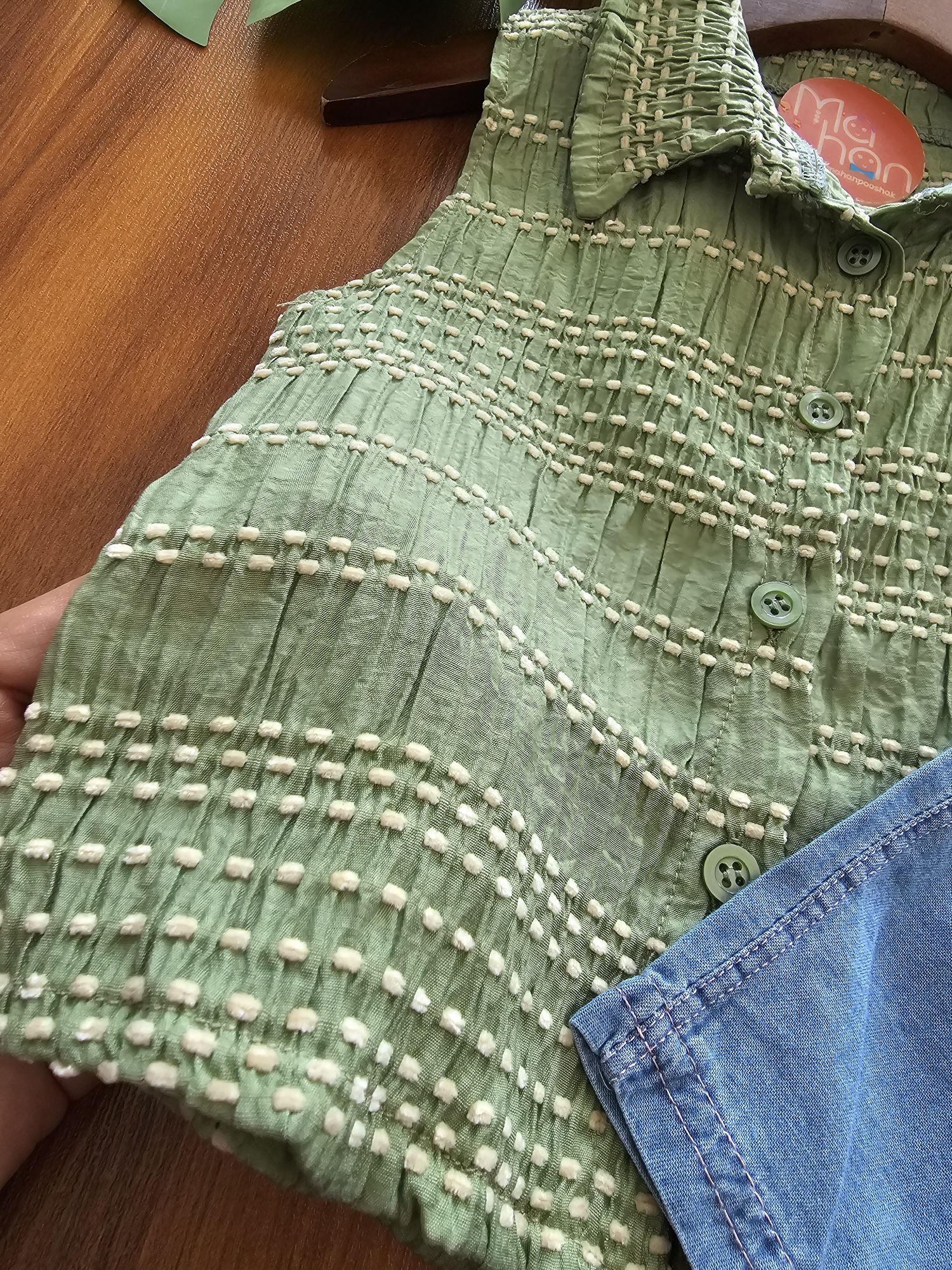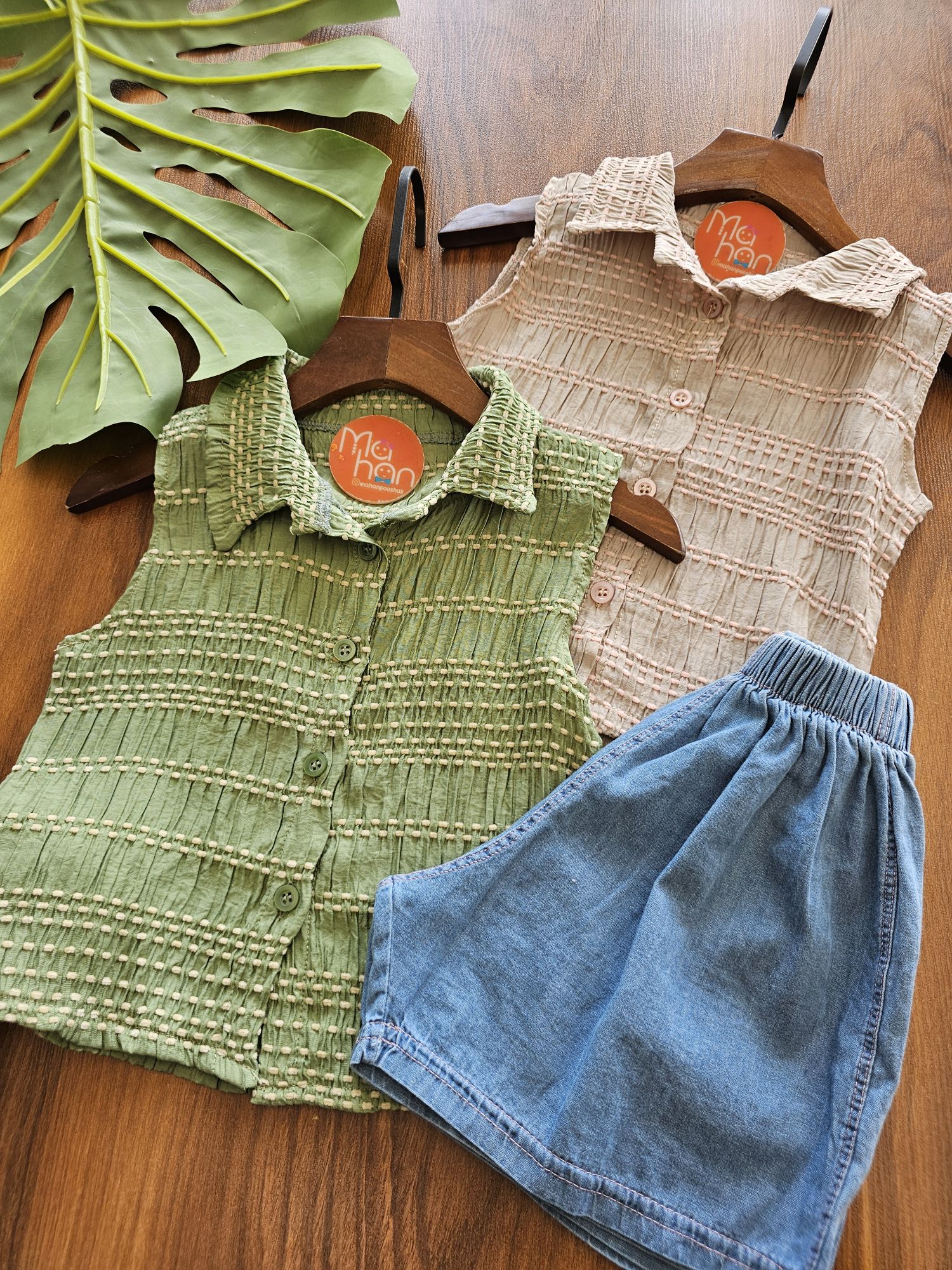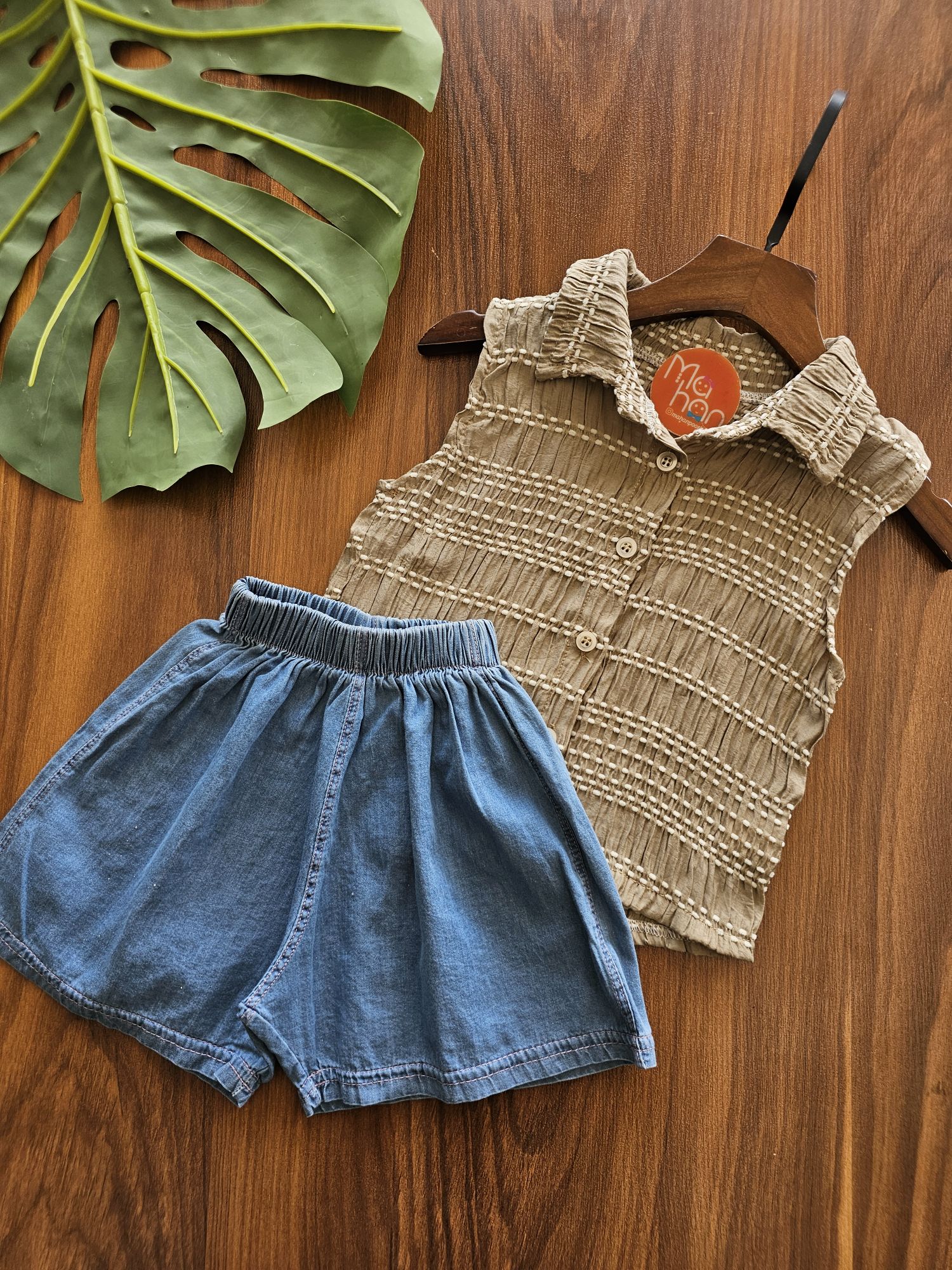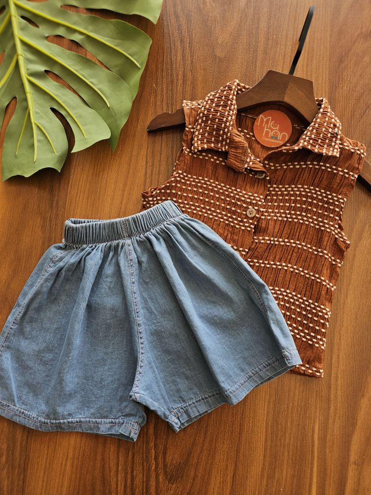 محصو.ل جذابمون الیاف پارچه بلوز ویسکوز هست چاپ زول شورتک جین کمر کش فوقالعاده کیفیت مطلوب✅️