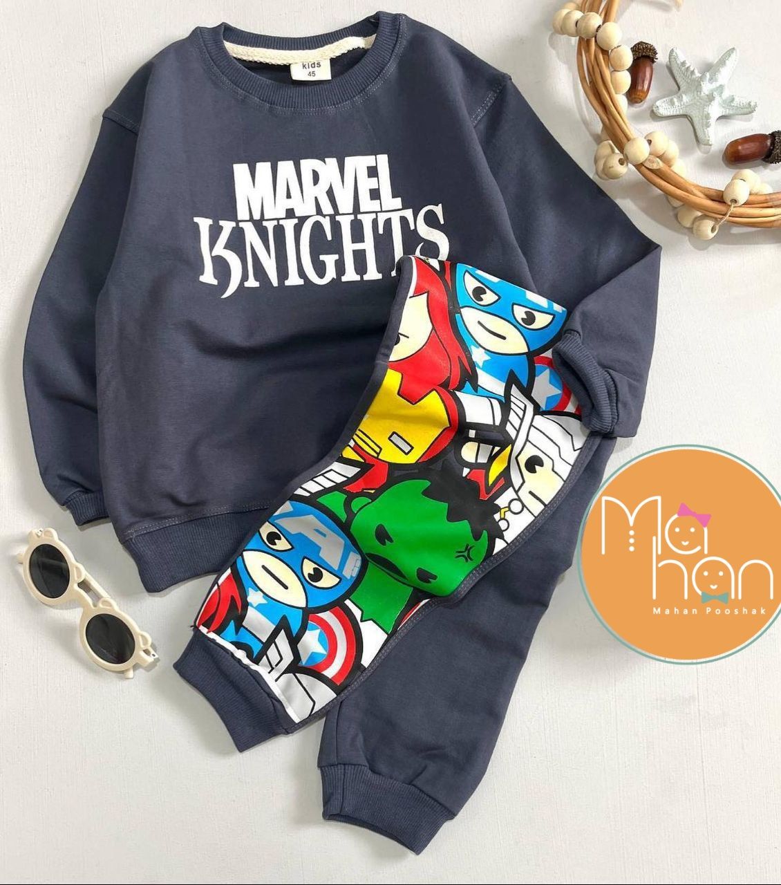 مناسب سن۱تا۷سال س35قد بلوز32پهنا30استین28شلوار45 س40قدبلوز38پهنا34استین32شلوار55 س45قدبلوز42پهنا37استین36شلوار63 س50قدبلوز47پهنا41استین39شلوار70