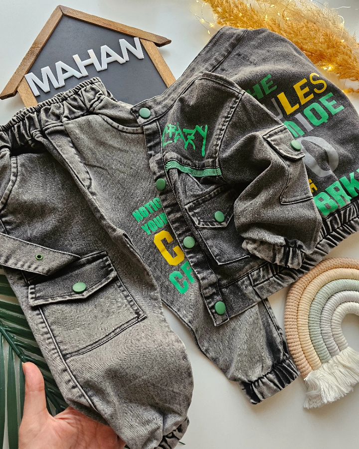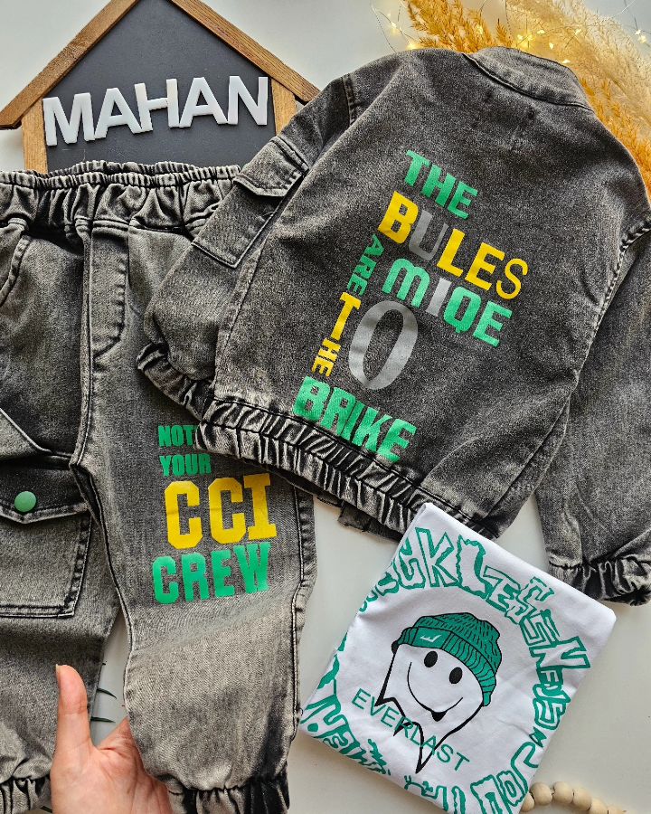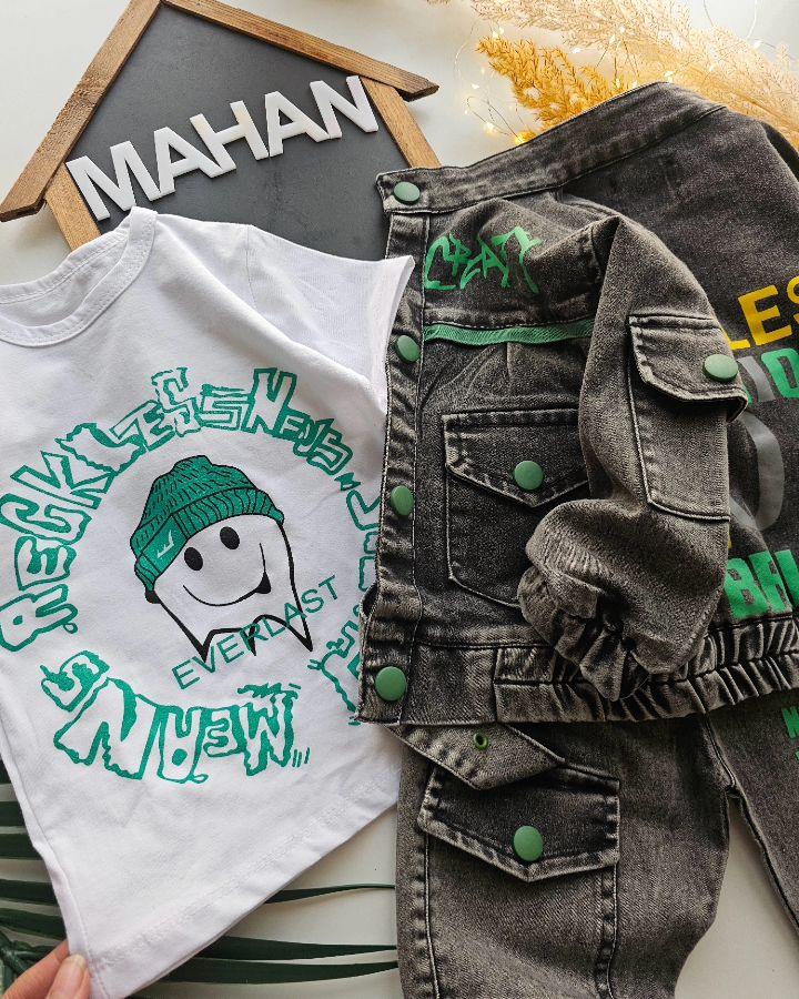 🟡ست کت و شلوار جین و تیشرت نخ پنبه شلوار دمپا کت چاپ دار کت فوقالعاده خوش دوخت و عالی 👌 کیفیت تضمینی✅️