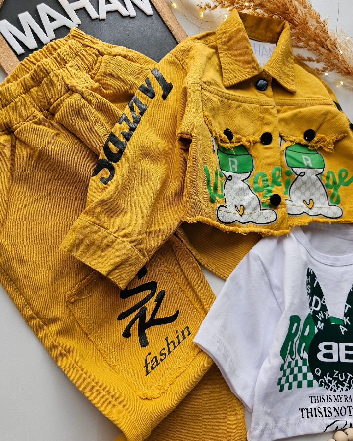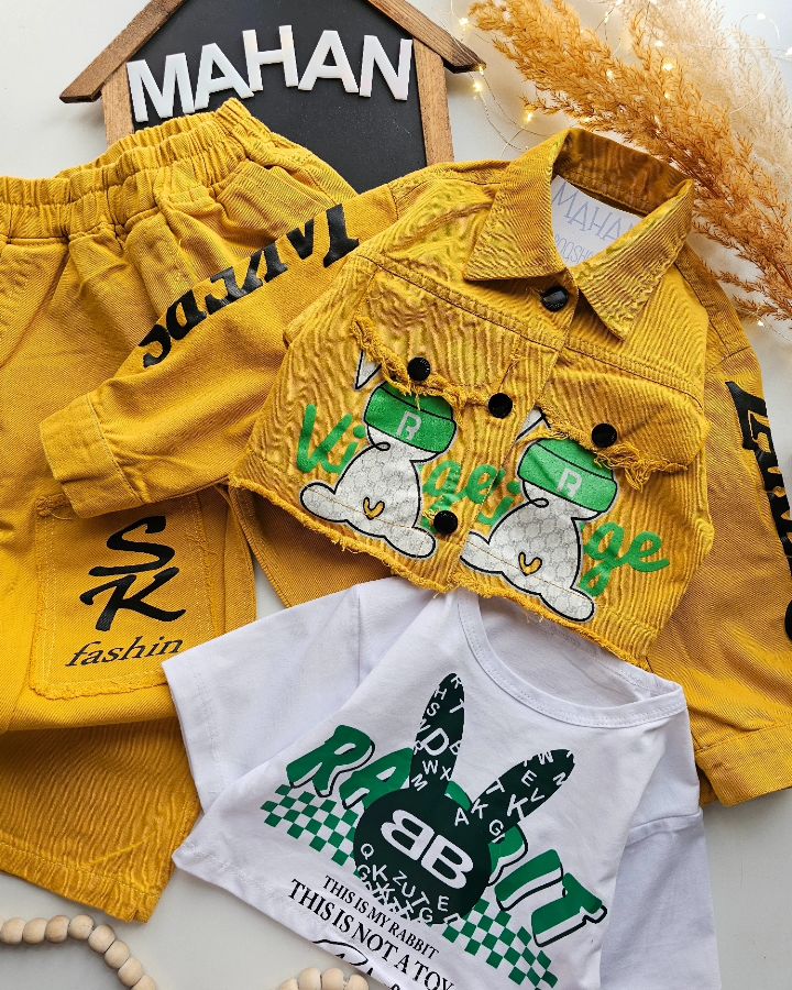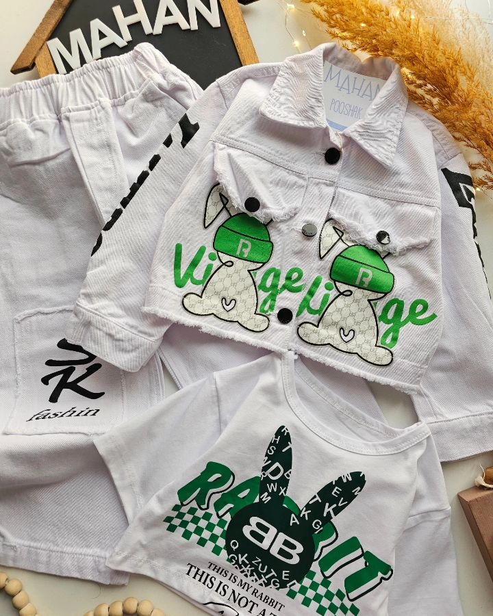 🟡ست سه تیکه کراپ و شلوار کتان اعلا مدل خرگوش شست پارچه بسیار خوش رنگ فوقالعاده خوش دوخت و عالی شلوار نیم بگ پاخور فوقالعاده زیره کراپ سفید نخ پنبه 👌 کیفیت تضمینی✅️