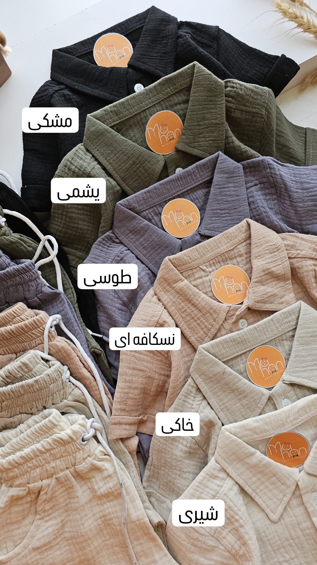 🟡بلوز آستین کوتاه دکمه دارشورتک کمر کش جنس موسلین بهاری پنبه اعلا  بسیار نرم و لطیف ضد حساسیت از هر لحاظ بی نظیر بشور بپوش  کیفیت تضمینی✅️