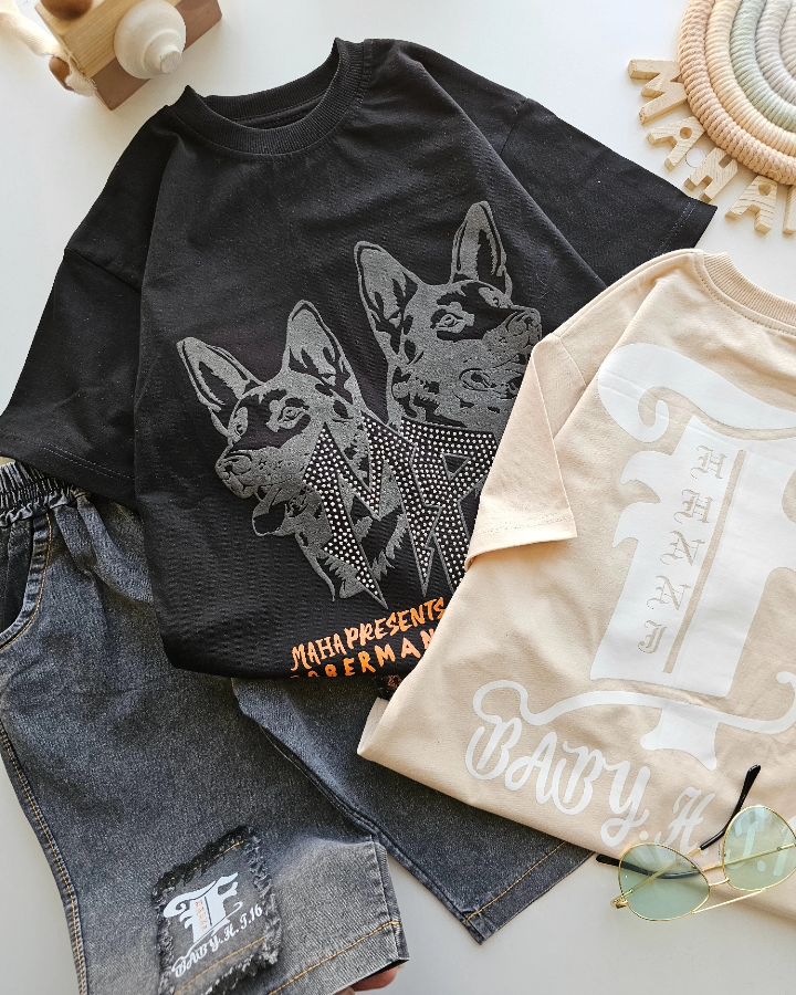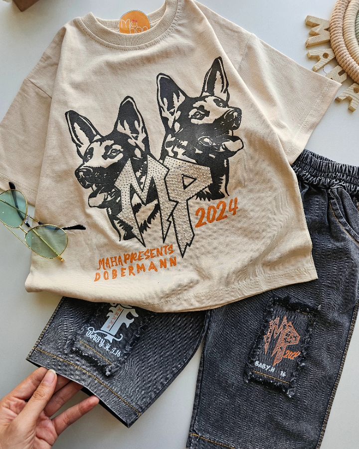 🟡جنس تیشرت نخ پنبه سوپرشلوارک جین کاغذی بسیار باکیفیت که نه خیلی زخیم نه خیلی نازک بسیار لطیف بی نهایت با کیفیت شلوارک کمر کش با دوخت تمیز ضد حساسیت یه ست فوقالعاده خاص و استثنایی ✅️
