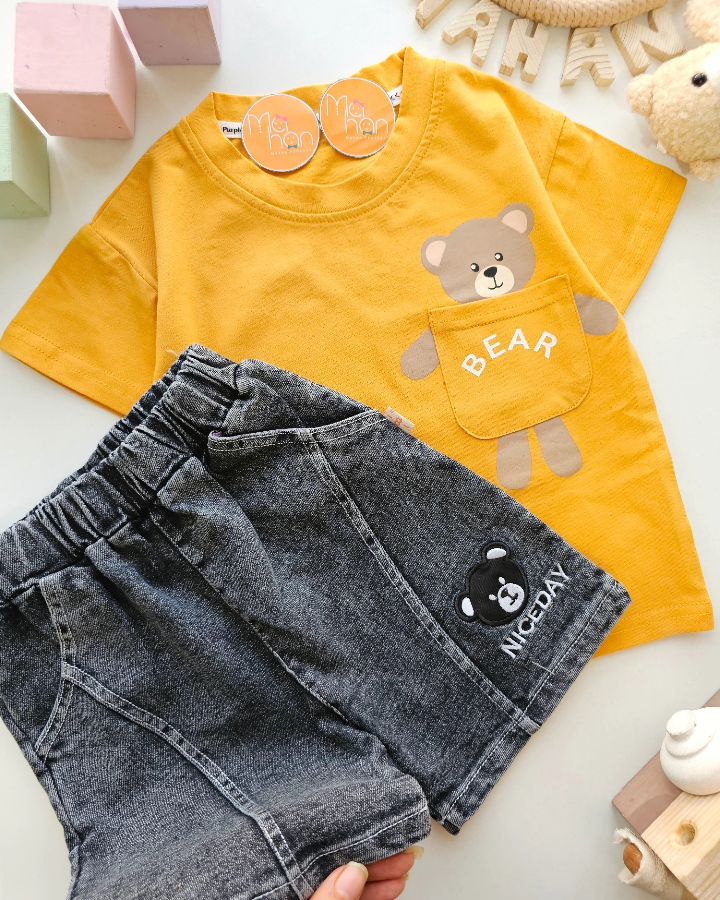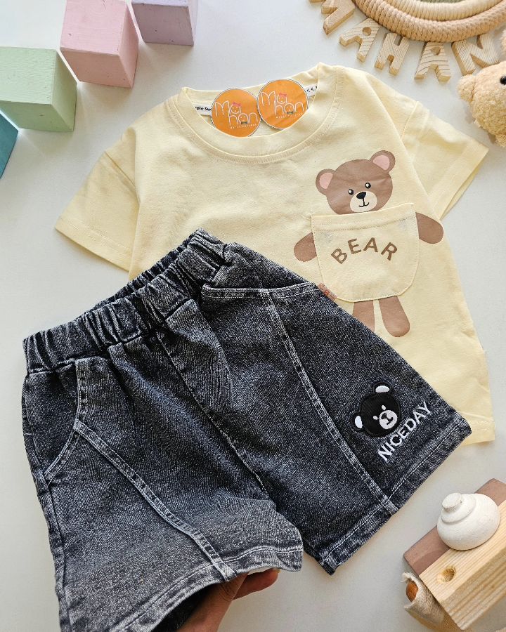🟡ست وارداتی اورجینال جنس تیشرت نخ پنبه اعلا بسیار نرم و لطیف ضد حساسیت شلوارک جین زغالی اعلا بسیار نرم از هر لحاظ بی نظیر👌 کیفیت تضمینی✅️