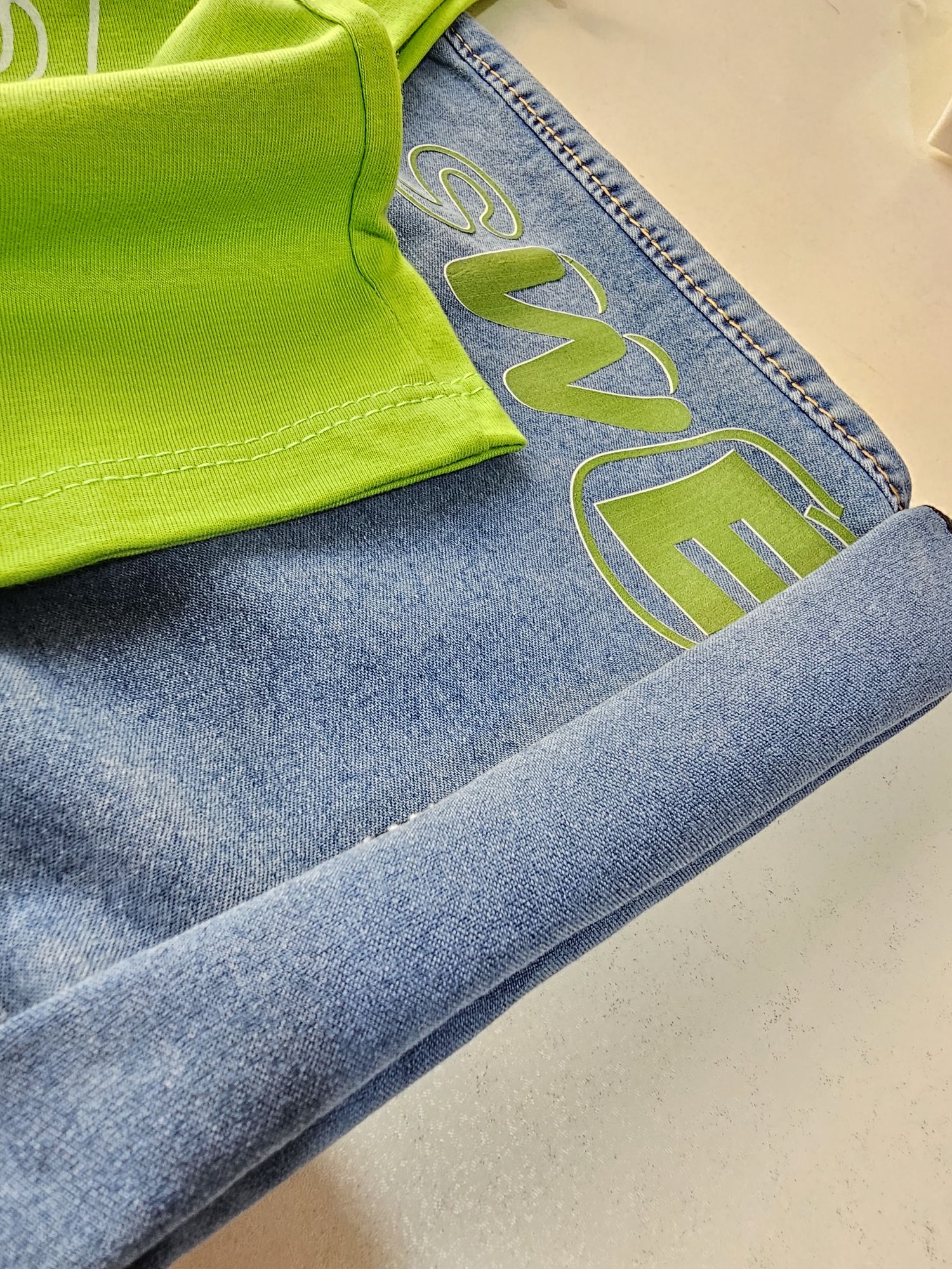 🟡جنس تیشرت نخ پنبه سوپر که سر شونه بازه و با بند به هم وصل شده قواره لانگ جون میده واسه دخترای توپولی 😍شلوارک جین کاغذی بسیار باکیفیت که نه خیلی زخیم نه خیلی نازک بسیار لطیف بی نهایت با کیفیت شلوارک کمر کش با دوخت تمیز ضد حساسیت یه ست فوقالعاده خاص و استثنایی ✅️