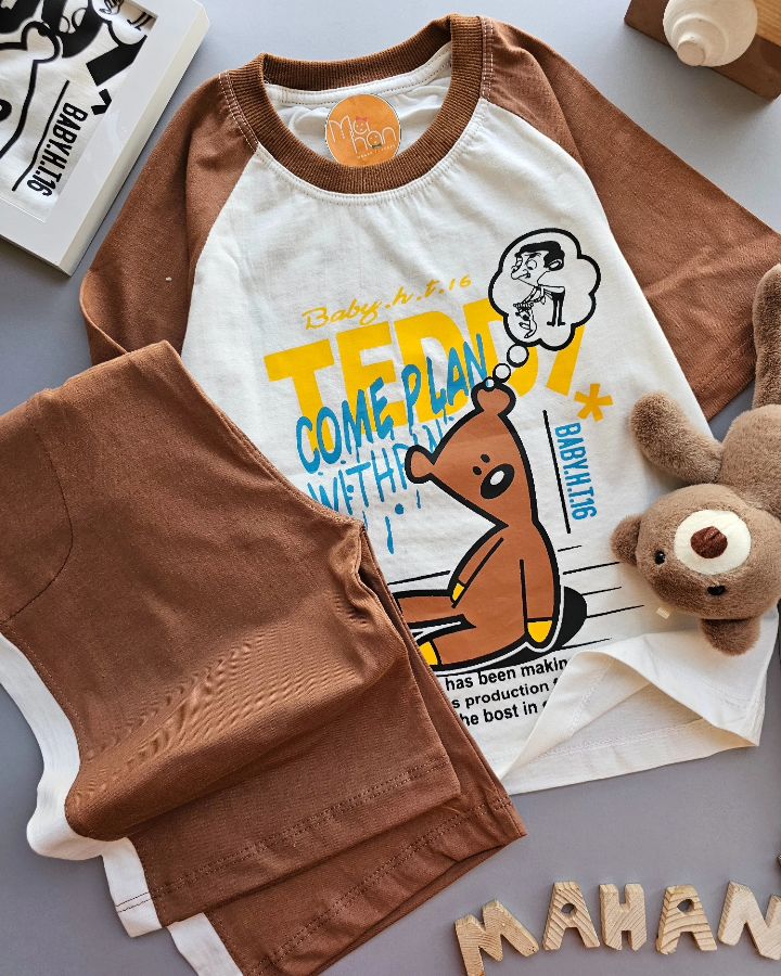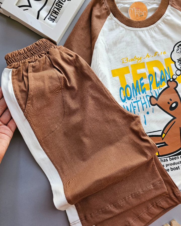 جنس تیشرت نخ پنبه با چاپ زول شلوارک پنبه سوپر کمر کش جیب داره پشت و روی کار یه ست با تنخور فوقالعاده شیک و خاص👌مخصوص دختر پسرای گل ماهانی پوش😍