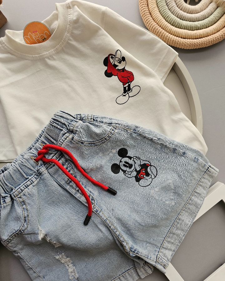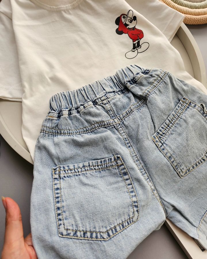 🟡ست وارداتی اورجینال جنس شلوارک جین بسیار نرم و لطیف تیشرت نخ پنبه سوپر ضد حساسیت از هر لحاظ بی نظیر👌 کیفیت تضمینی✅️