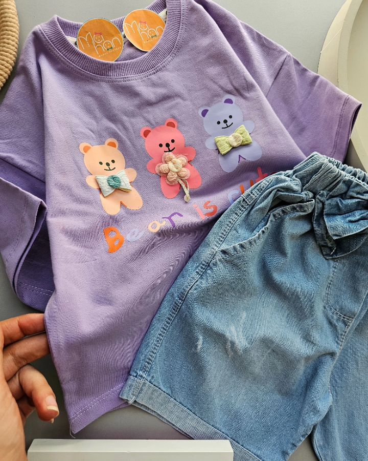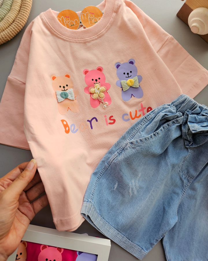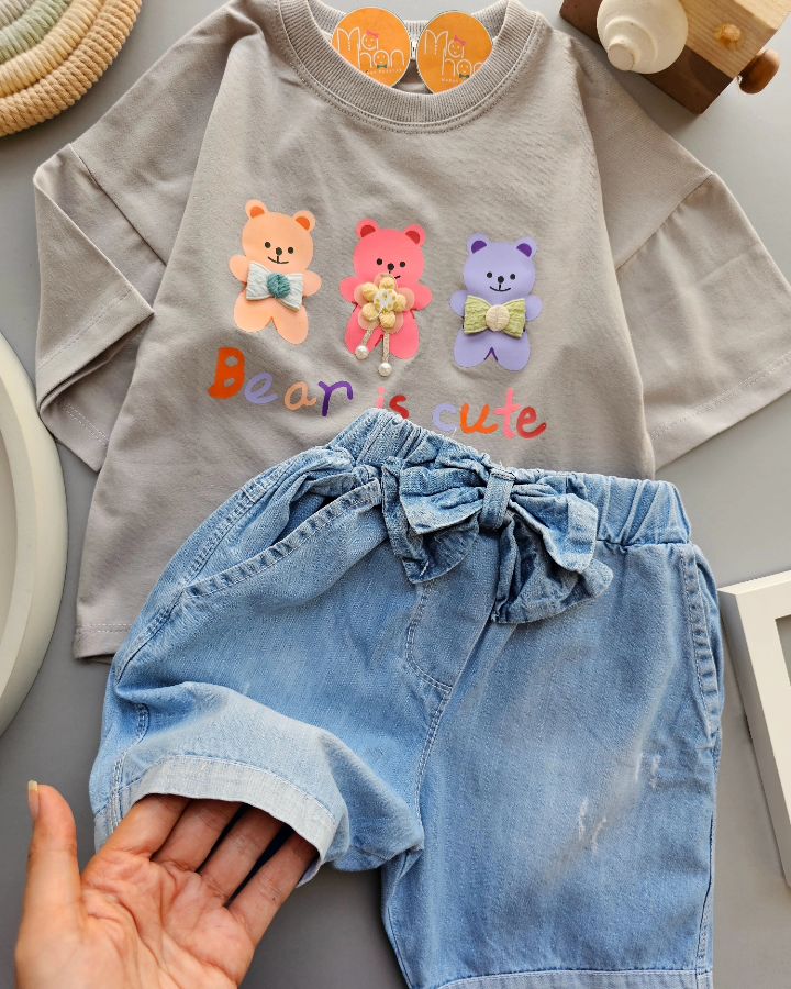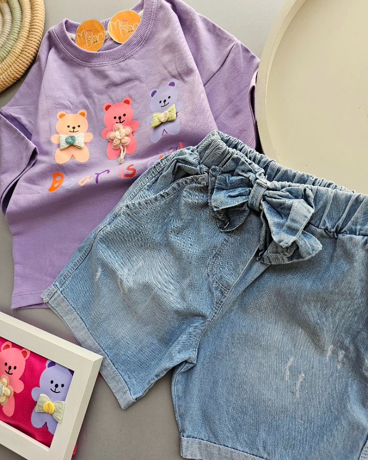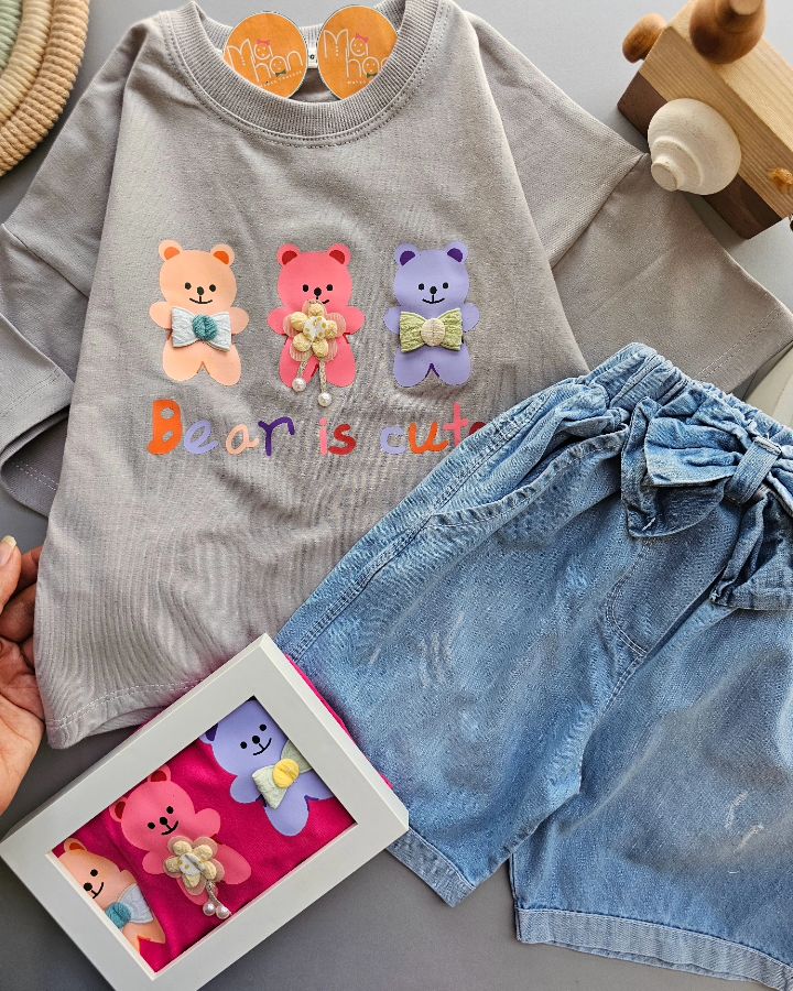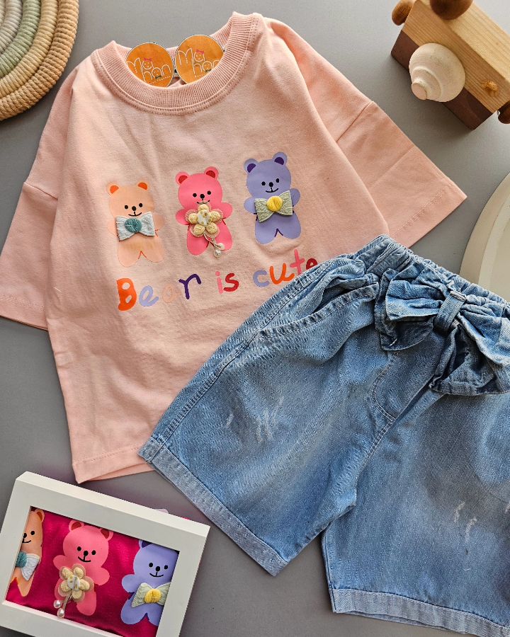 🟡ست خرسی جنس شلوارک جین بسیار نرم و لطیف تیشرت نخ پنبه سوپر لانگ آستین سه رب تنخور فوقالعاده ضد حساسیت از هر لحاظ بی نظیر👌 کیفیت تضمینی✅️
