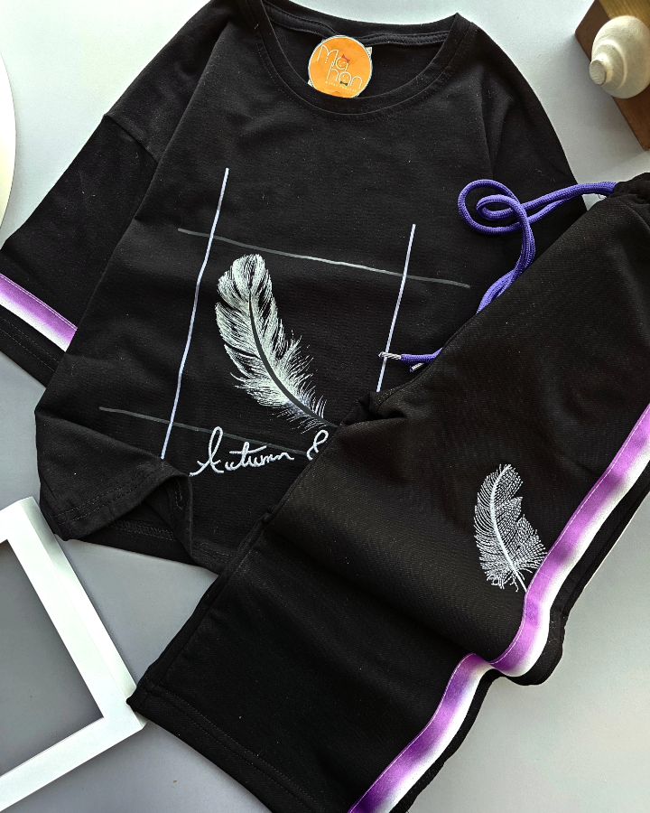 🟡جنس تیشرت پنبه سوپر شلوار بگ اسلش کمر کش قابل تنظیم گلدوزی شده  دمپای مدل برگی چاک داره  جفت مدل ها جیب دارن دوخت  بسیار زیبا و تنخور شیک کیفیت تضمینی  ✅️