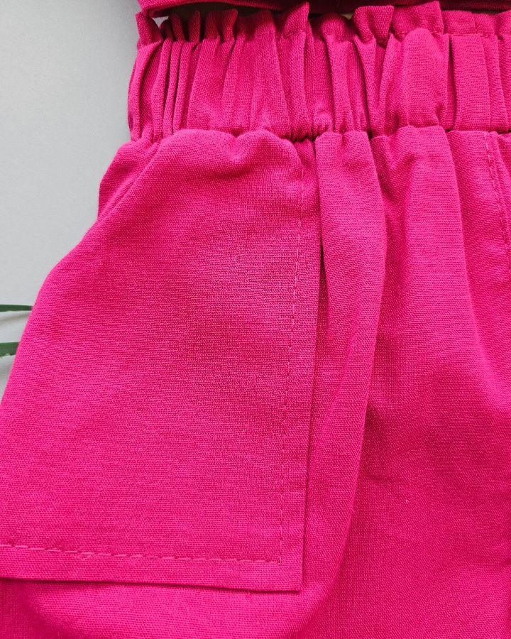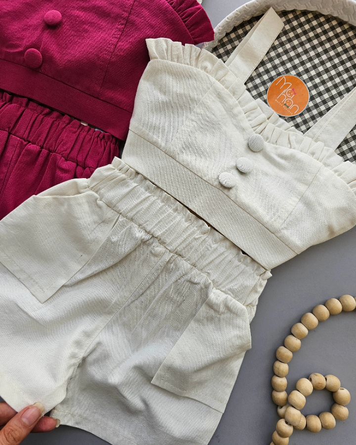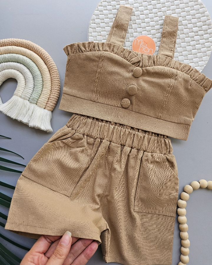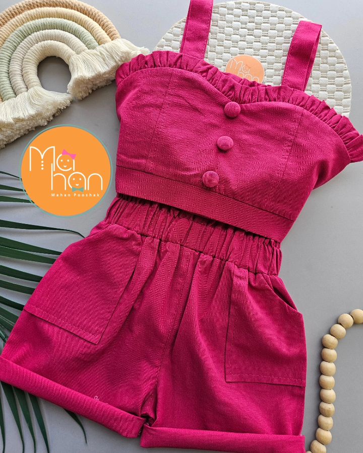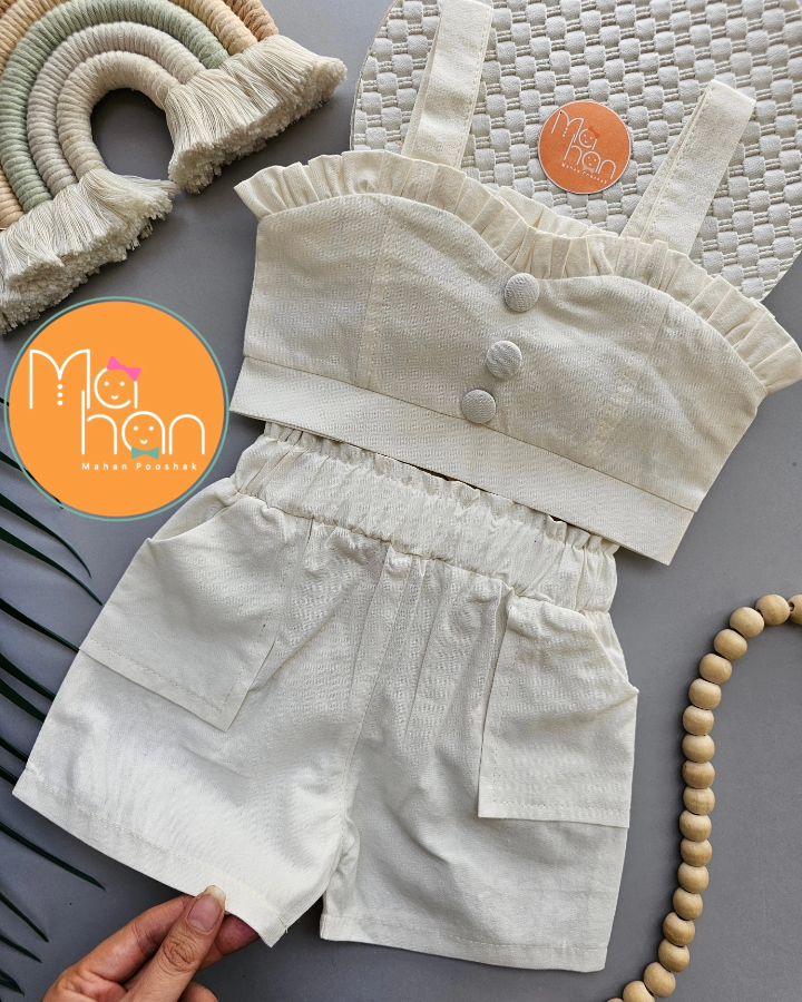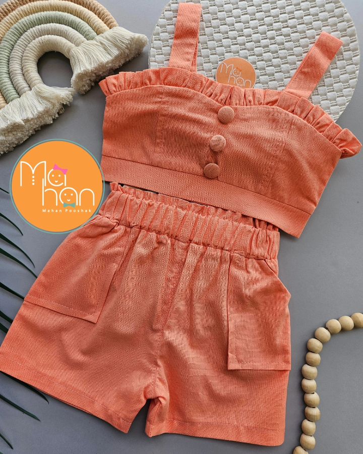 🟡 جنس لنین نخ فوقالعاده خنک که نیاز به تعریف نداره کراپ نمی تنه با شورتک تنخور شیکی داره شلوارک خیلی خوش پا کمرکش جیب داره از هر لحاظ عالی یه استایل شیک و مجلسی برا دخترت باهاش بزن✅️