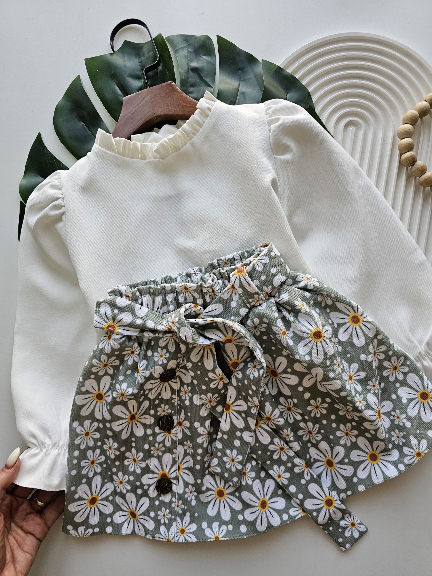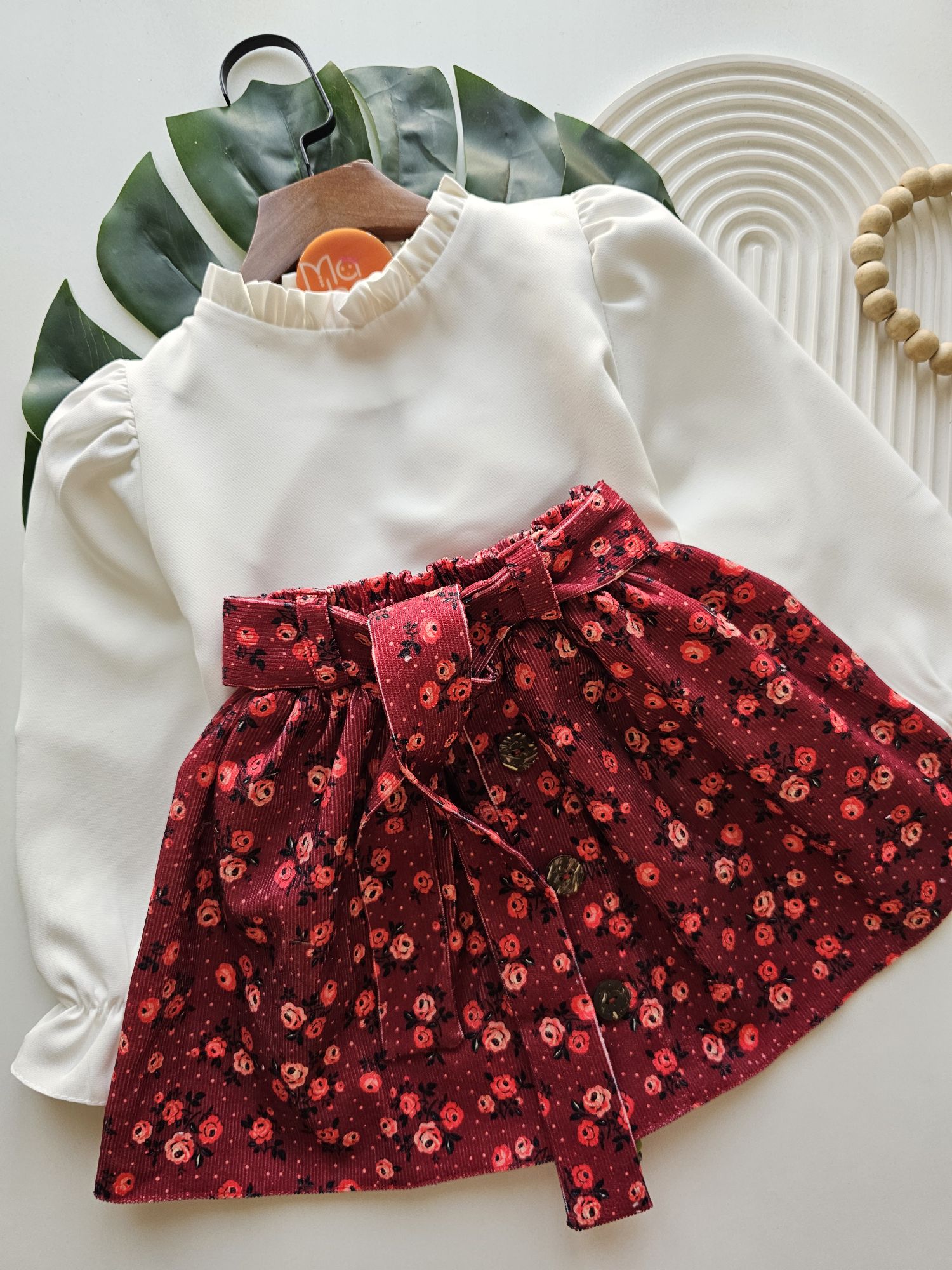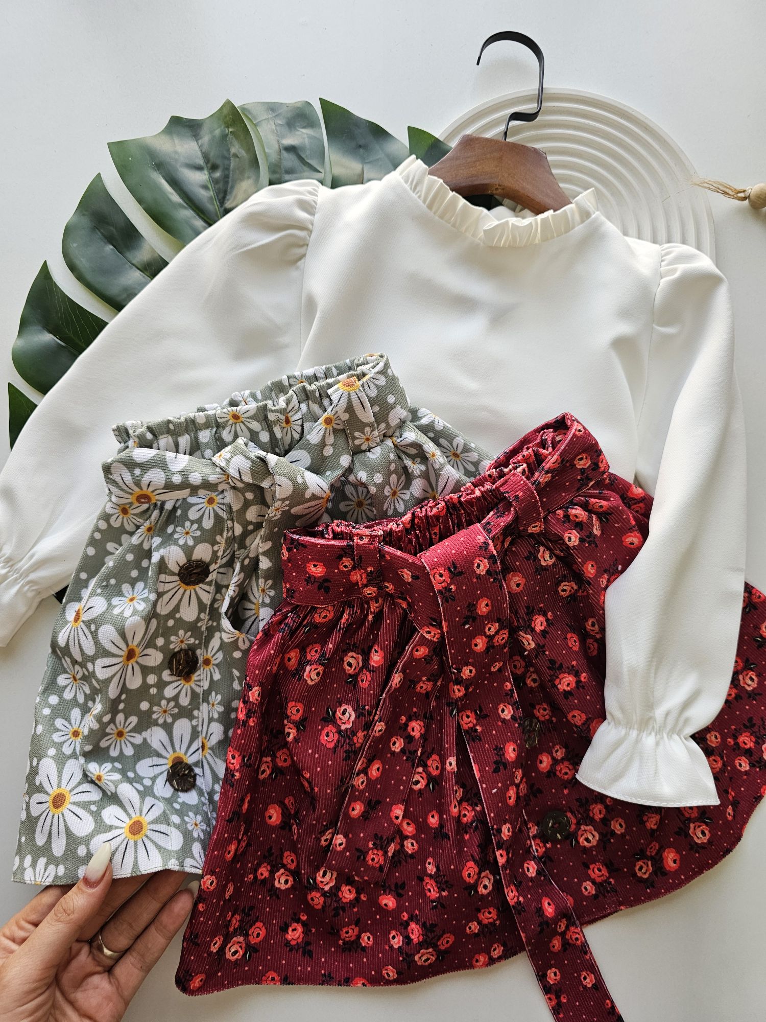 🟡جنس شومیز کرپ مازراتی سر آستین چین پشت یقه دکمه میخوره که سر بچه براحتی داخل بشه دامن پر چین خوشگل از جنس مخمل کبریتی مه کمربند میخوره چند تا دکمه زیبا روش کار شده دوخت بسیار زیبا درجه یک از هر نظر حرف نداره از دستش ندید👋