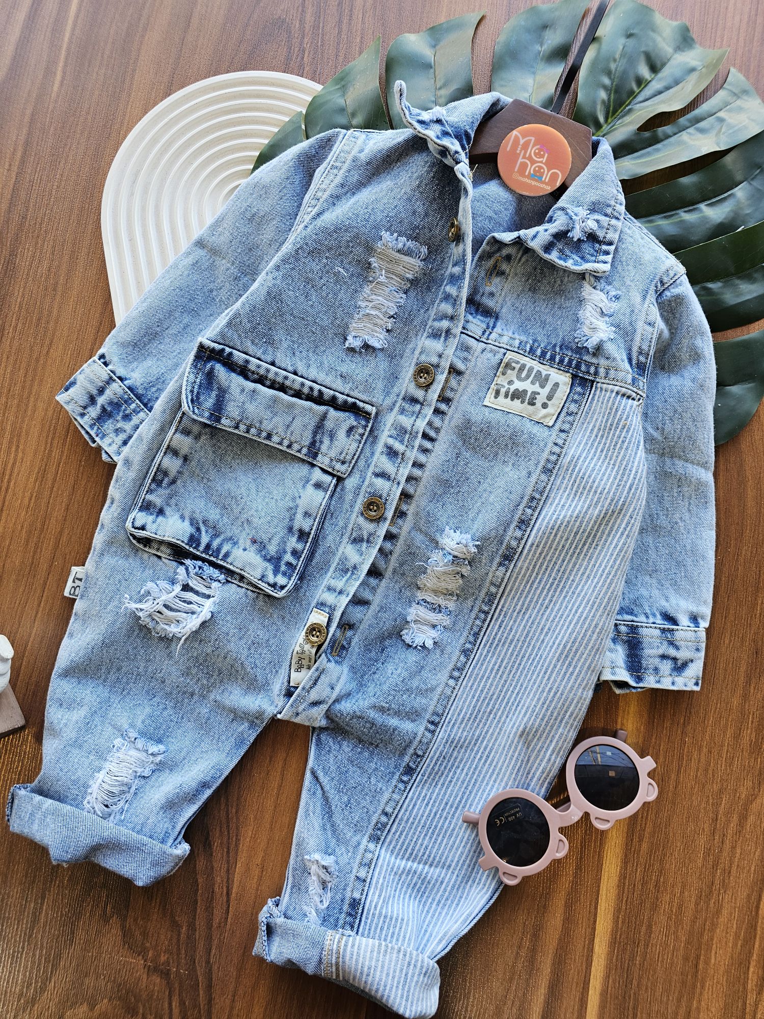 جنس جین خارجی اعلا زاپ دارچاپ عالی،جلودکمه براحتی تن بچه میشه ،دوخت بسیار تمیز از هر نظر زیبا و باکیفیت👌