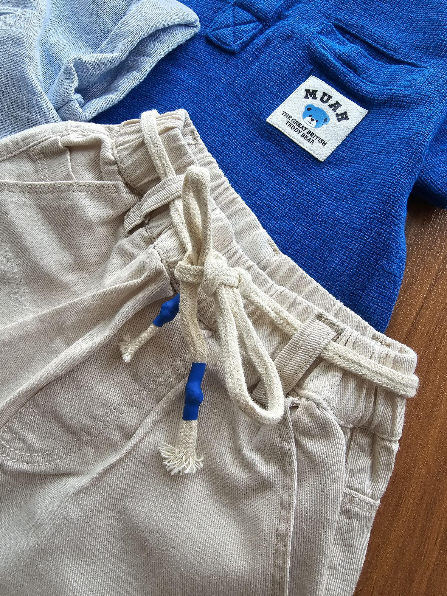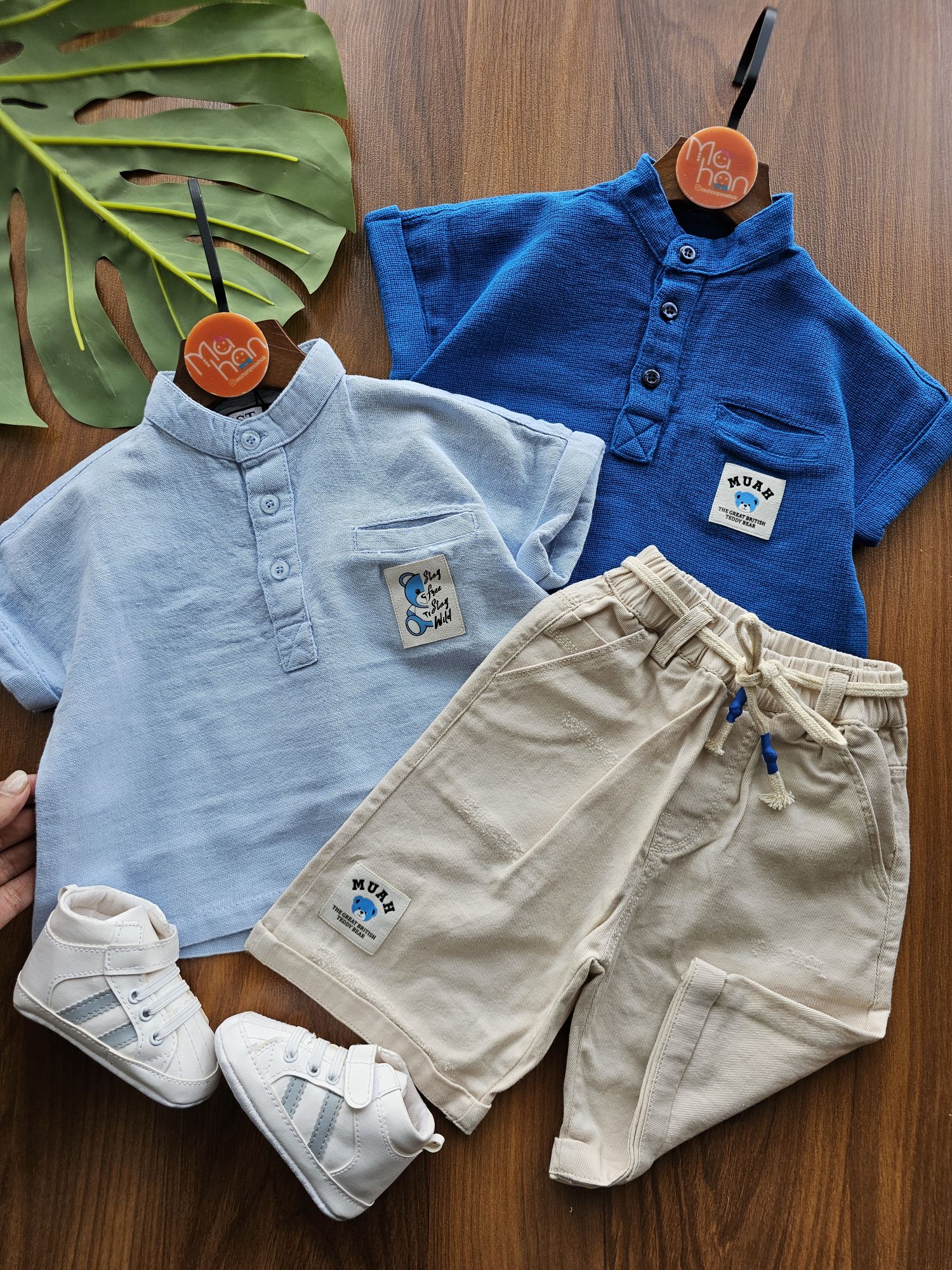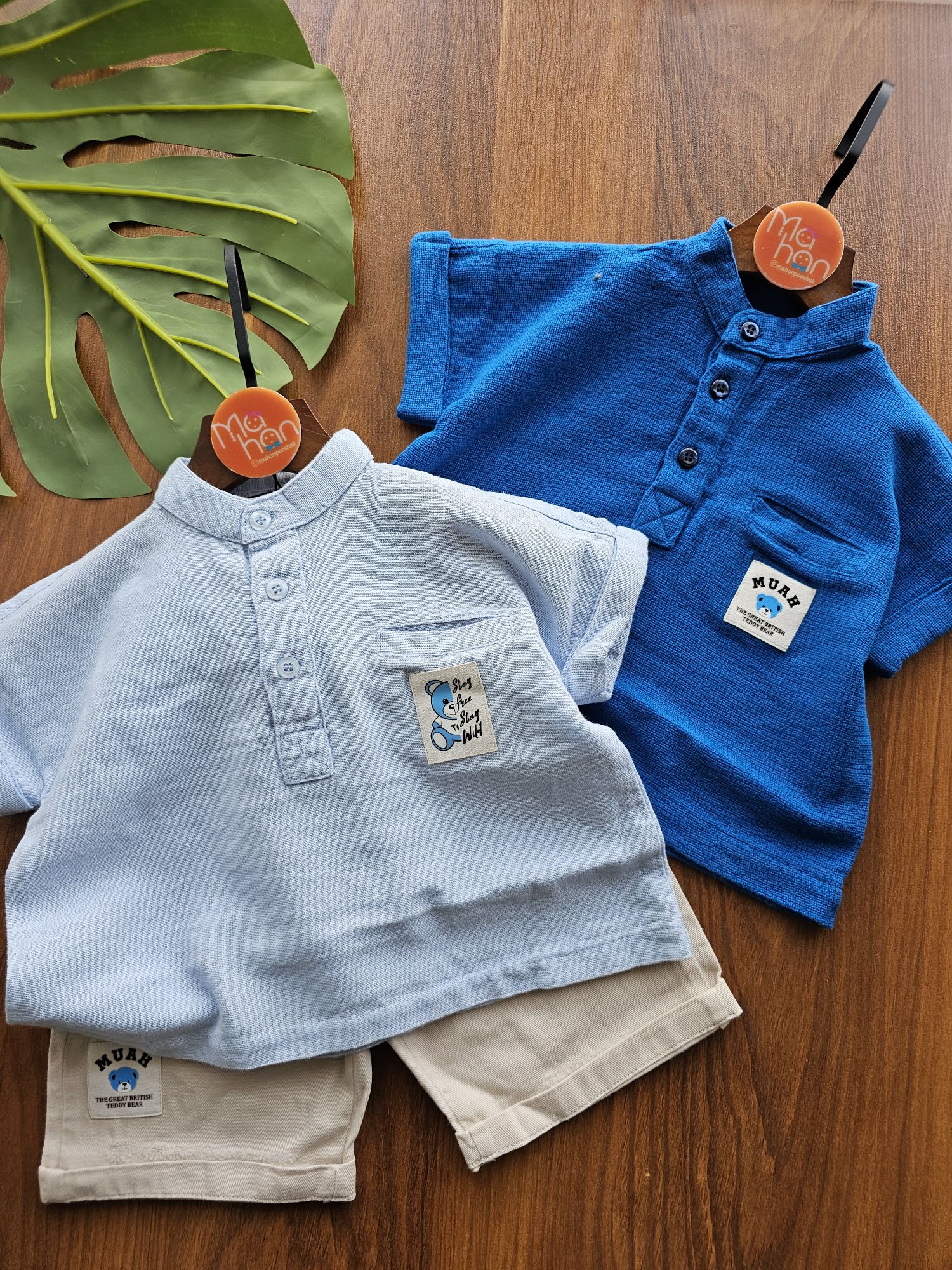 بلور نخی بسیار باکیفیت و خنکی داره که دکمه خوره و موقع تن کردن بچه اذیت نمیشه شلوارک کتان کمرکش داره با کش قابل تنظیم تن خور کار بیار شیک و فوقالعاده 👌