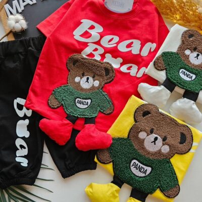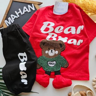 سایز۳۵/۴۰/۴۵/۵۰/۵۵ 🟡حدودا مناسب سن 9ماه تا۹سال 🔴 سایز35👈قدتیشرت34پهنا32شلوارک33 سایز40👈قدتیشرت38پهنا35شلوارک38 سایز45👈قدتیشرت43پهنا37شلوارک43 سایز50👈قدتیشرت50پهنا39شلوارک51 سایز55👈قدتیشرت56پهنا42شلوارک57
