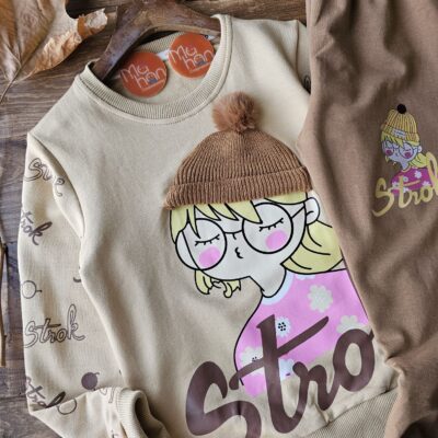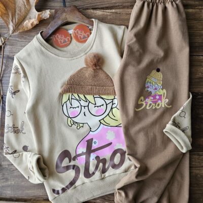 ست دخترانه کلاه کرمی ۴۵/۵۰