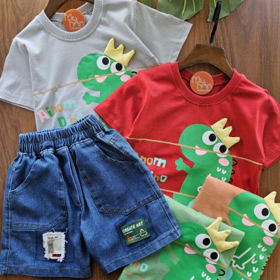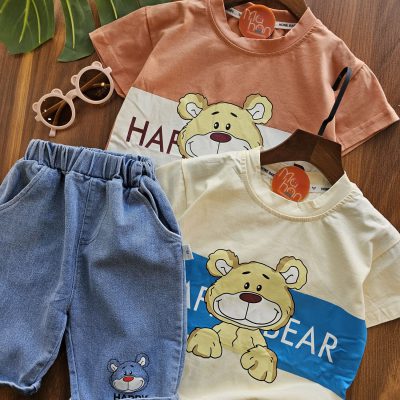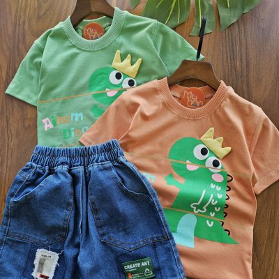 🟡ست وار.داتی ا.ور.جینال جنس شلوارک جین بسیار نرم و لطیف تیشرت نخ پنبه سوپر ضد حساسیت چاپ زول کلاه دوخته